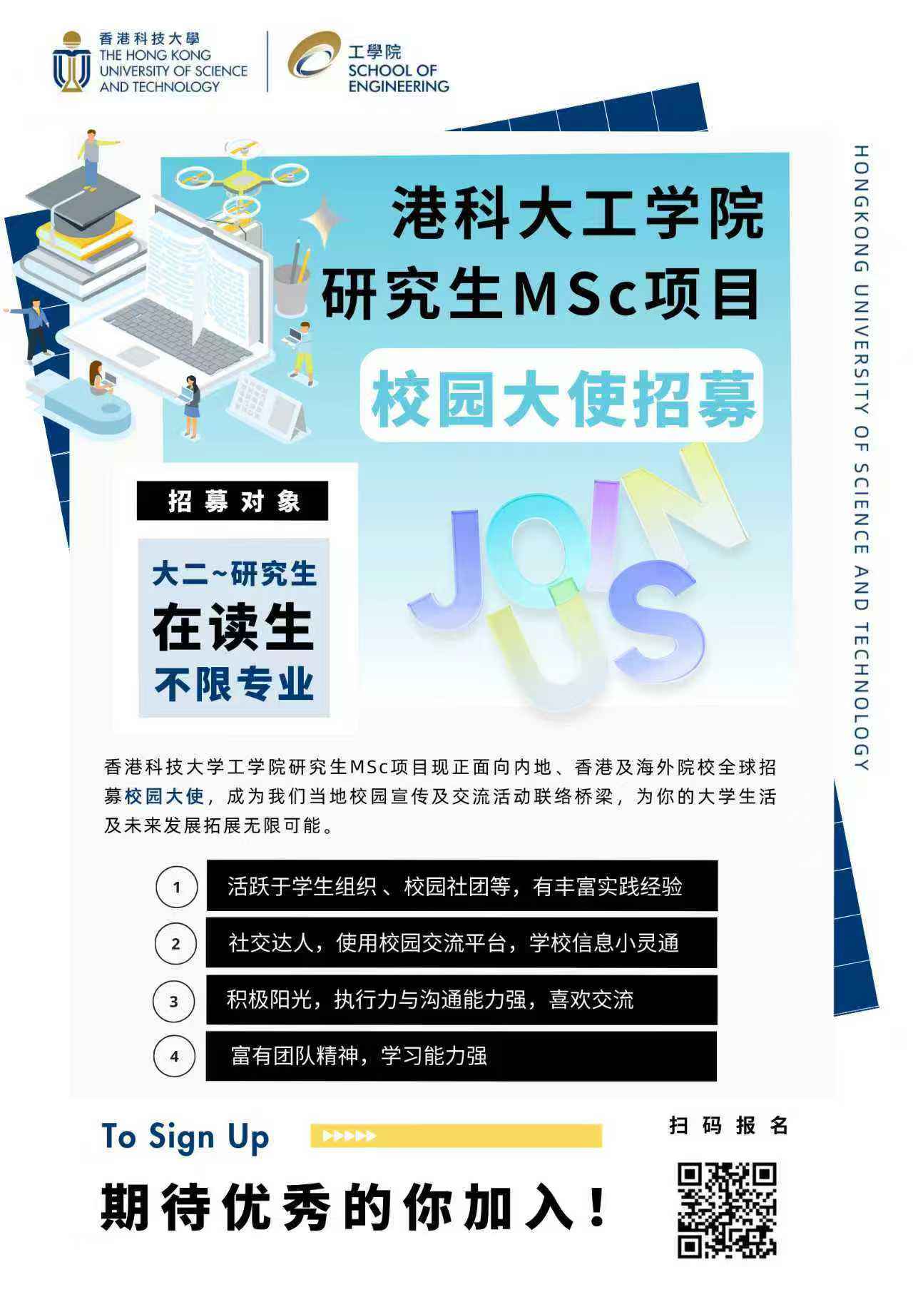 报名啦|香港科技大学工学院MSc 2026 校园大使!